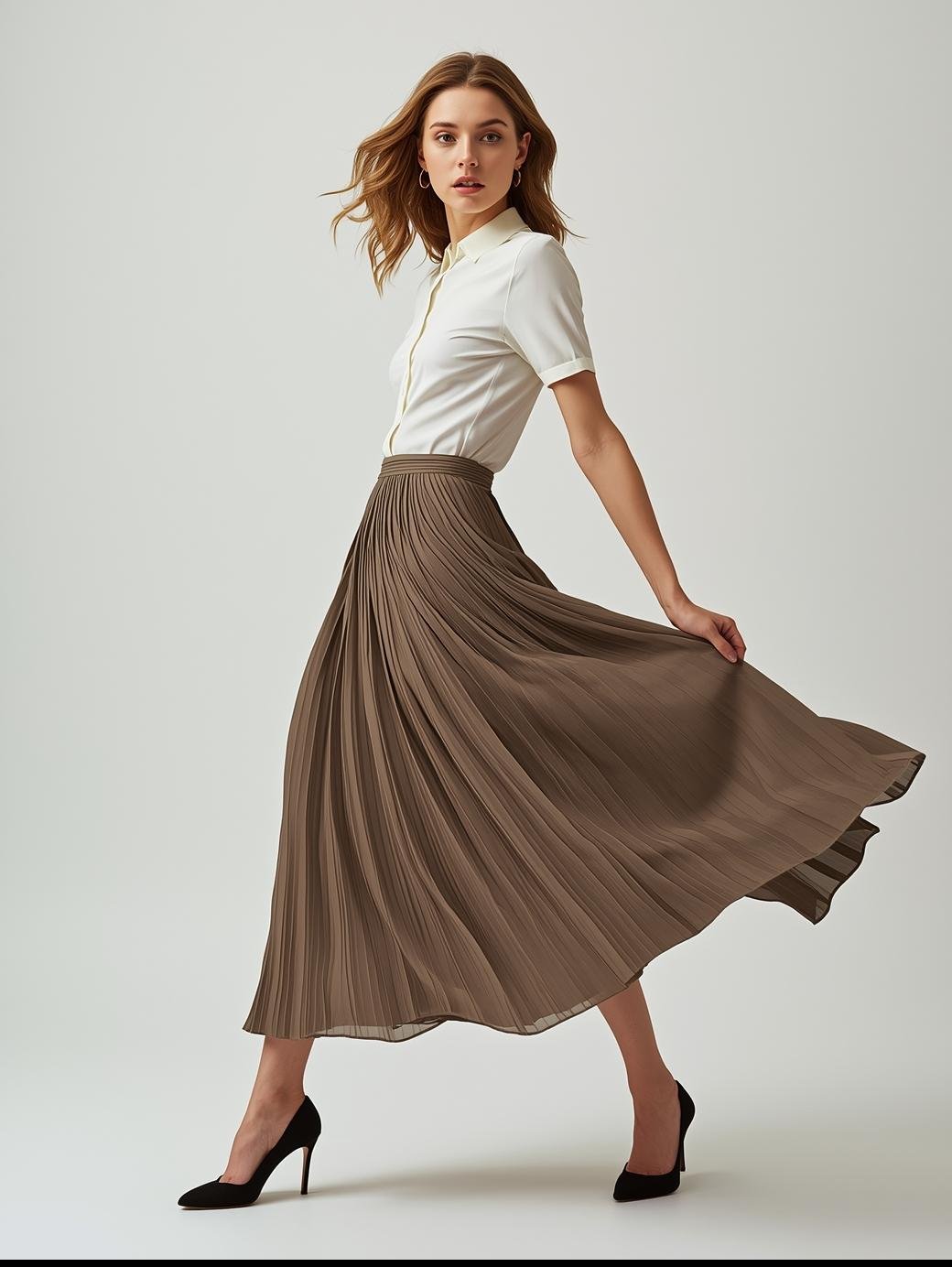 A-line and pleated midi-length skirts offer the perfect balance between comfort and elegance. Pair them with tucked-in blouses or cropped knit sweaters for a sophisticated look.